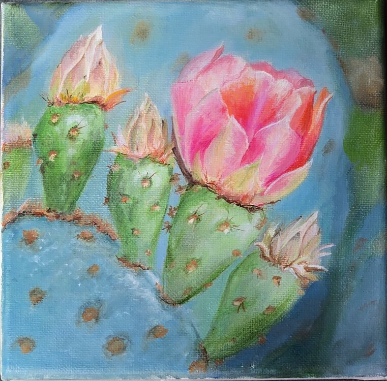 This little cactus packs a big punch of color...4x6 oil on canvas...$15. My momma always said" the point is...the cross is empty". 4x6 oil on canvas..$15 I love to see the pear in bloom...7x7 oil on stretched canvas...$35. CrittersVideo