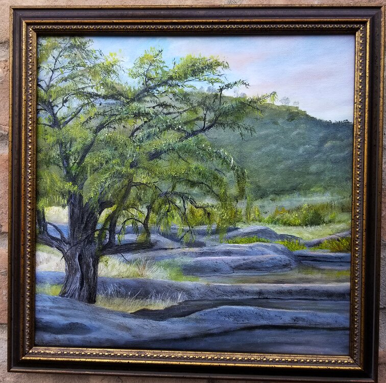 16x16 oil on canvas...In my mind's eye I can see the early spring light. Based on a photo by Bailey Alexander...$195 Birch Path12 X 16 Oil on canvas...A path though the birch trees, a calm place to walk...$350. Rains coming soon over the fields...Monsoon...8x10 canvas board...SOLD 14x18 oil on canvas...The beautiful reflections of sky and greens; my take on Pedernales State Park in the spring. Based on a photo by K. Vena...$95 11x14 oil on Linen canvas...Some mornings you just want a long walk...$75. 12x12 oil on canvas...based on a memory of a trip to Perdenales Falls many years ago...$50. 11x14 Oil on Canvas...SOLD Michael's Garden...Sold 8x10 oil on board...SOLD 10x8 oil on canvas...SOLD 7x7 oil on canvas...SOLD 4x12 oil on canvas...SOLD Sand and Seas